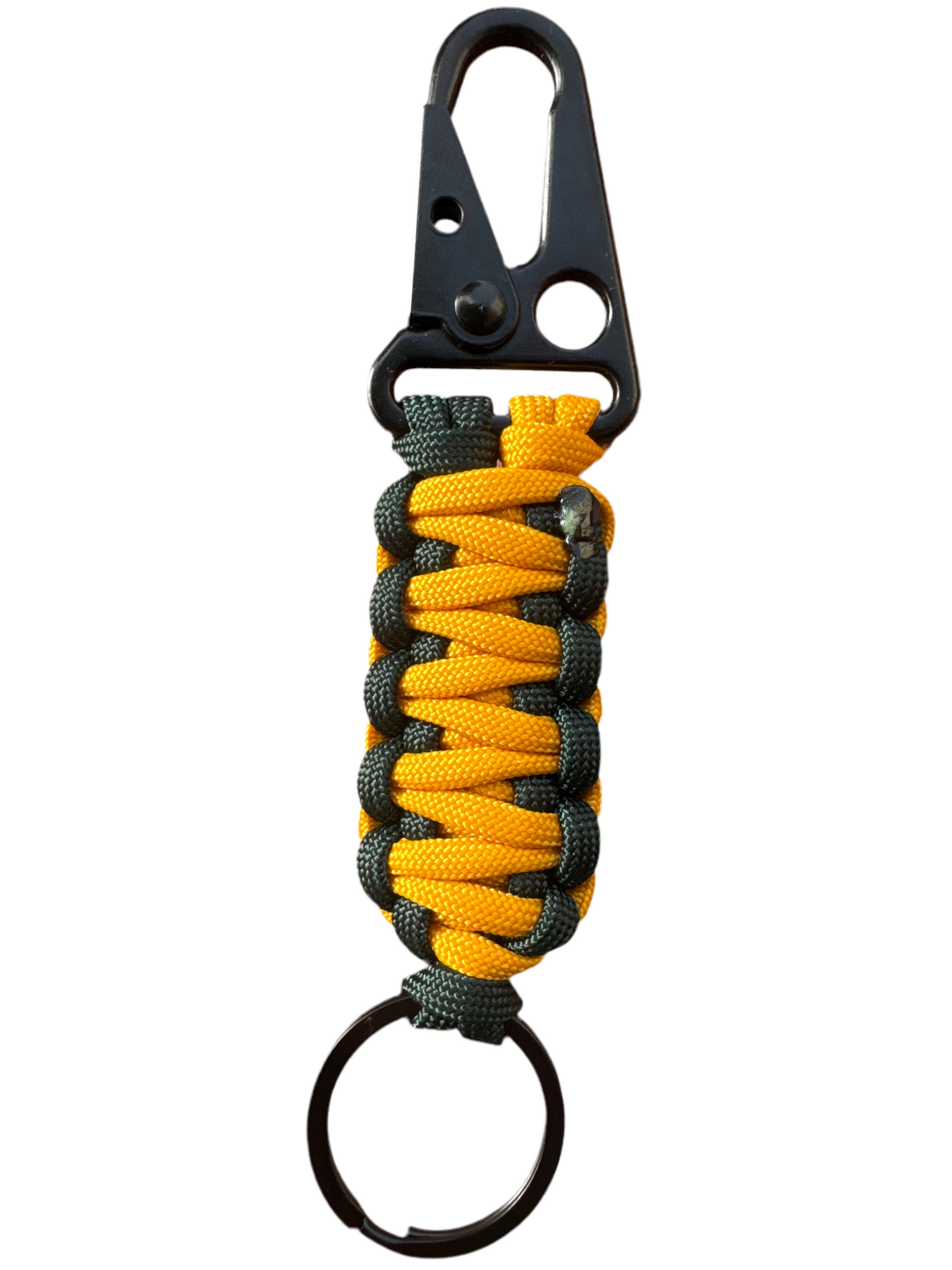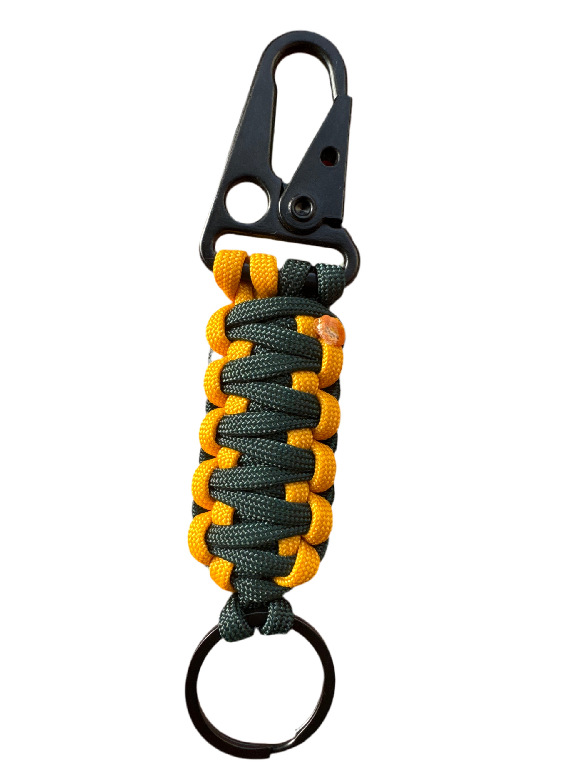 Llavero Paracord amarillo/verde oscuro con mosquetón