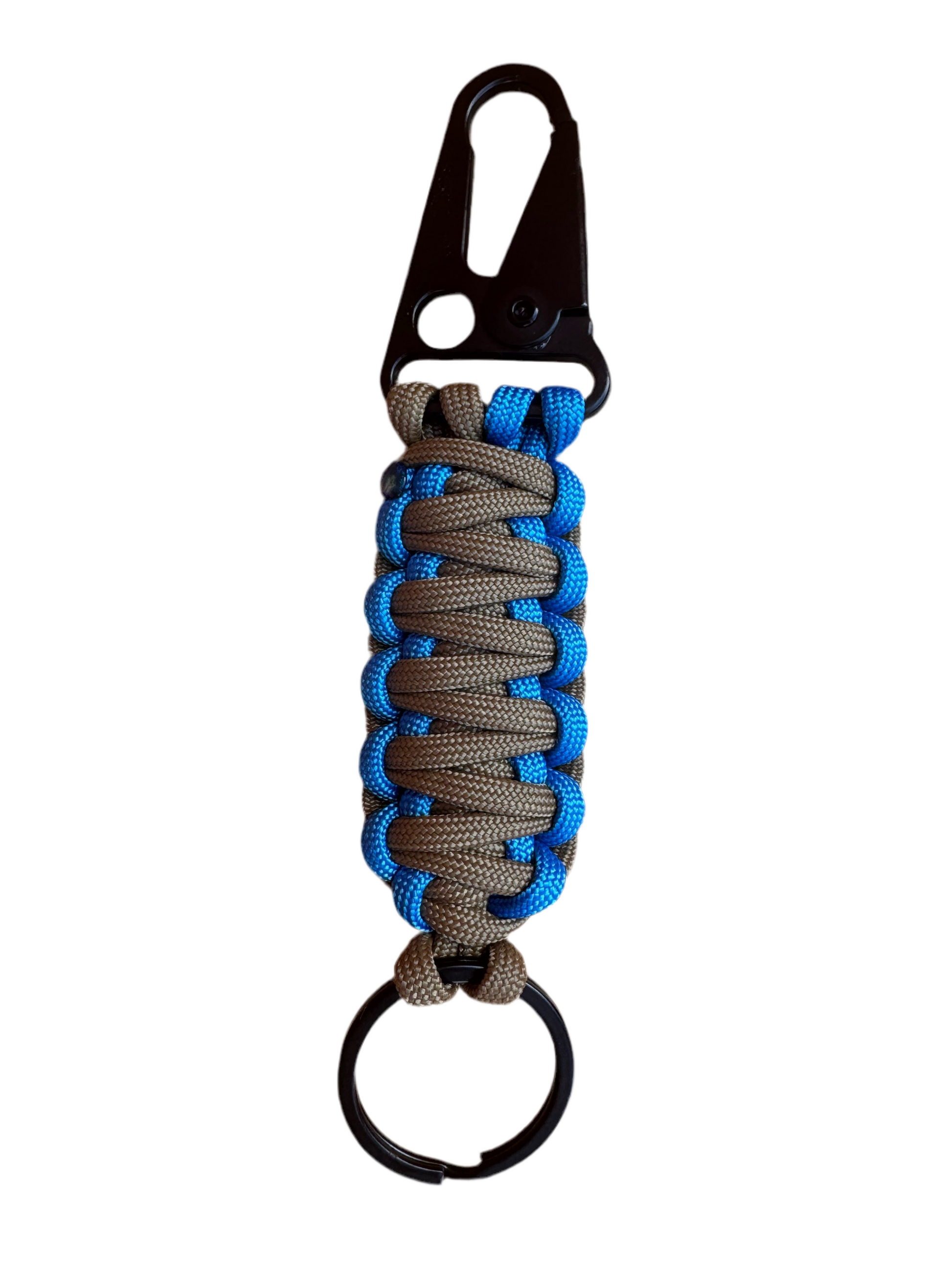 Fabricado en paracord de nylon y acero, este llavero es perfecto para actividades al aire libre, ya que su material es conocido por su alta resistencia y versatilidad. El mosquetón permite una fácil sujeción a cinturones, mochilas o llaves, asegurando que tus pertenencias estén siempre al alcance. Este llavero es una excelente opción para quienes valoran la funcionalidad sin sacrificar el estilo.