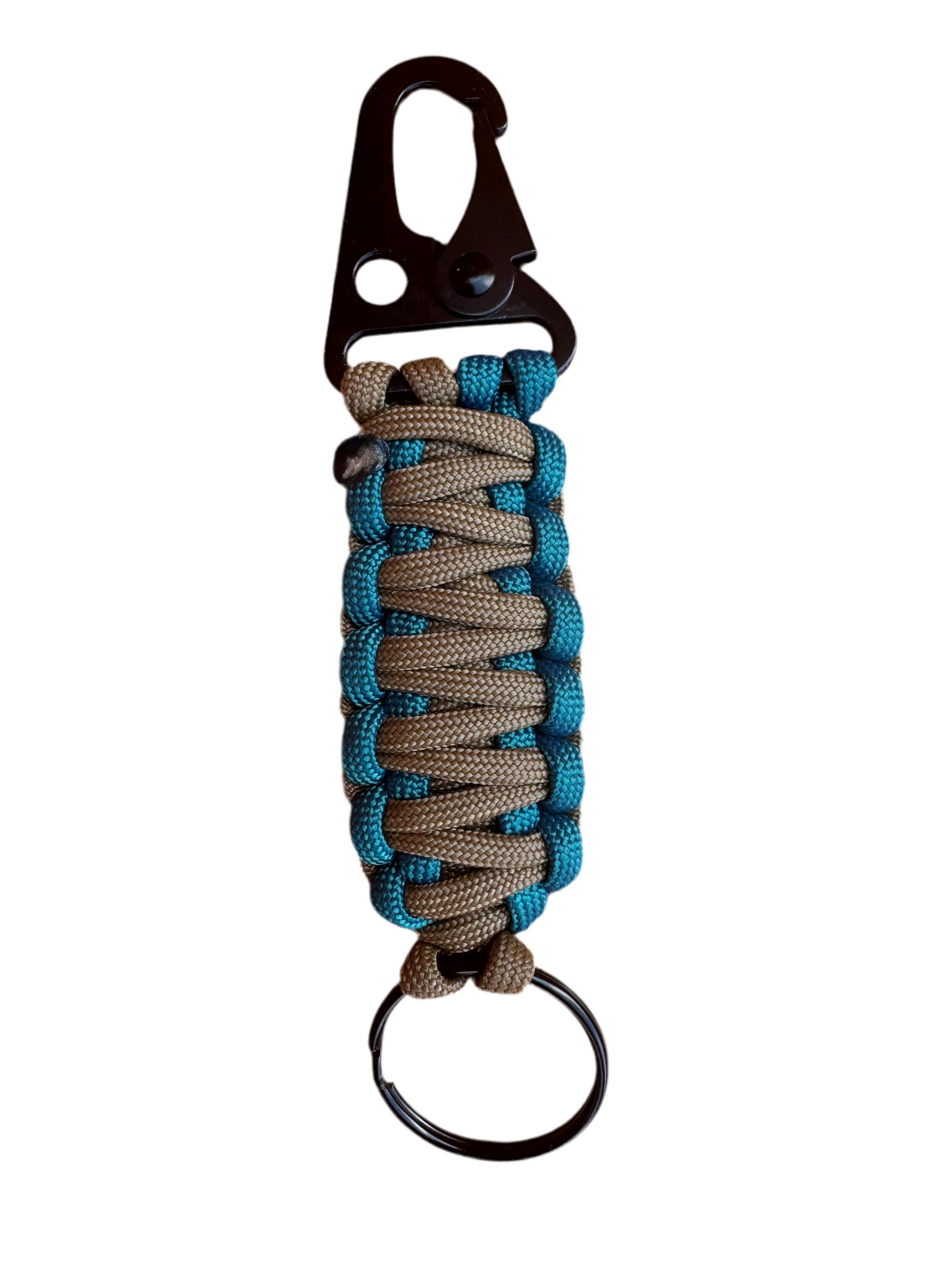 Llavero Paracord Beige/Azul metálico con Mosquetón