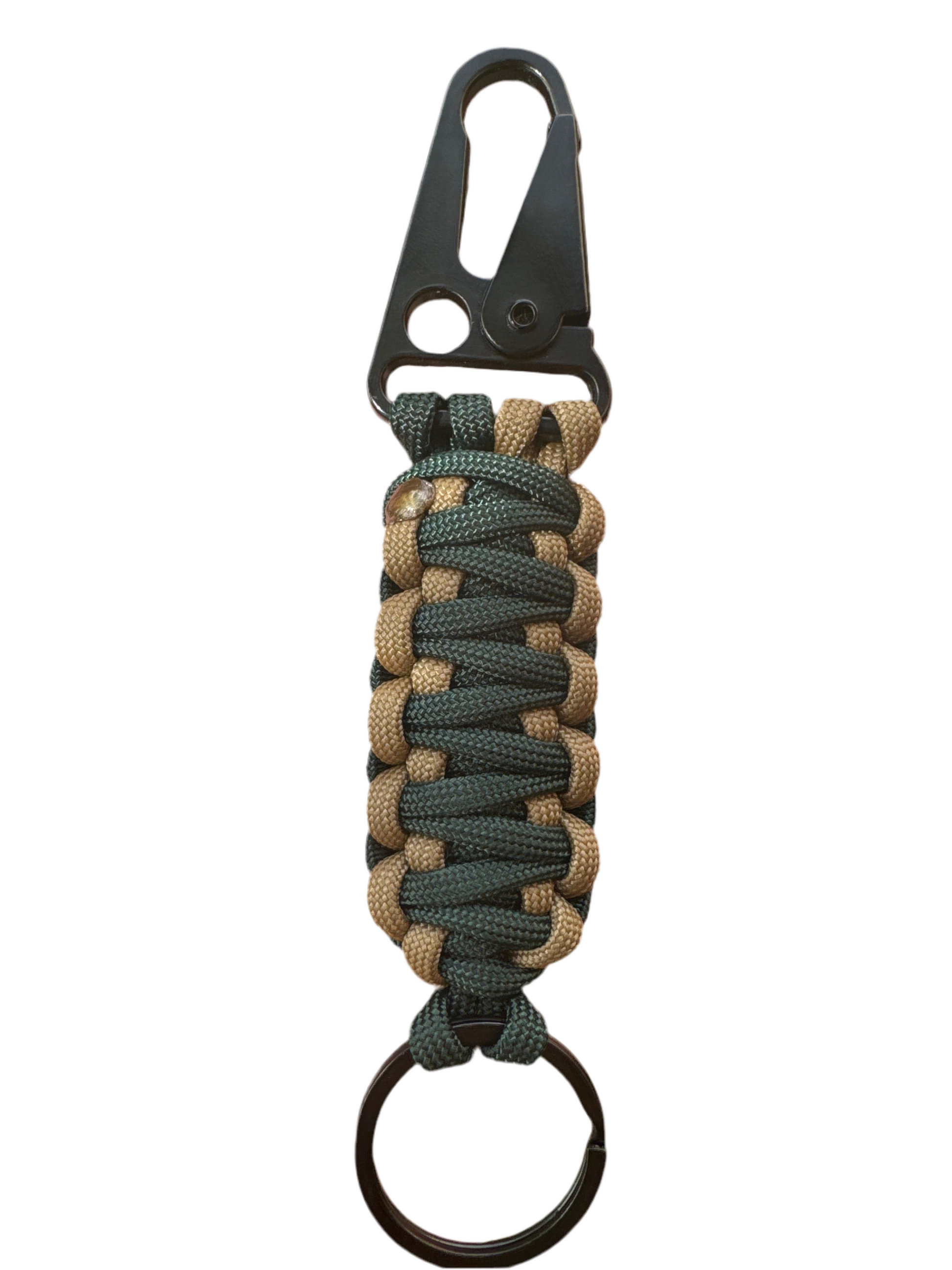 Llavero Paracord beige/Verde Oscuro Con Mosquetón