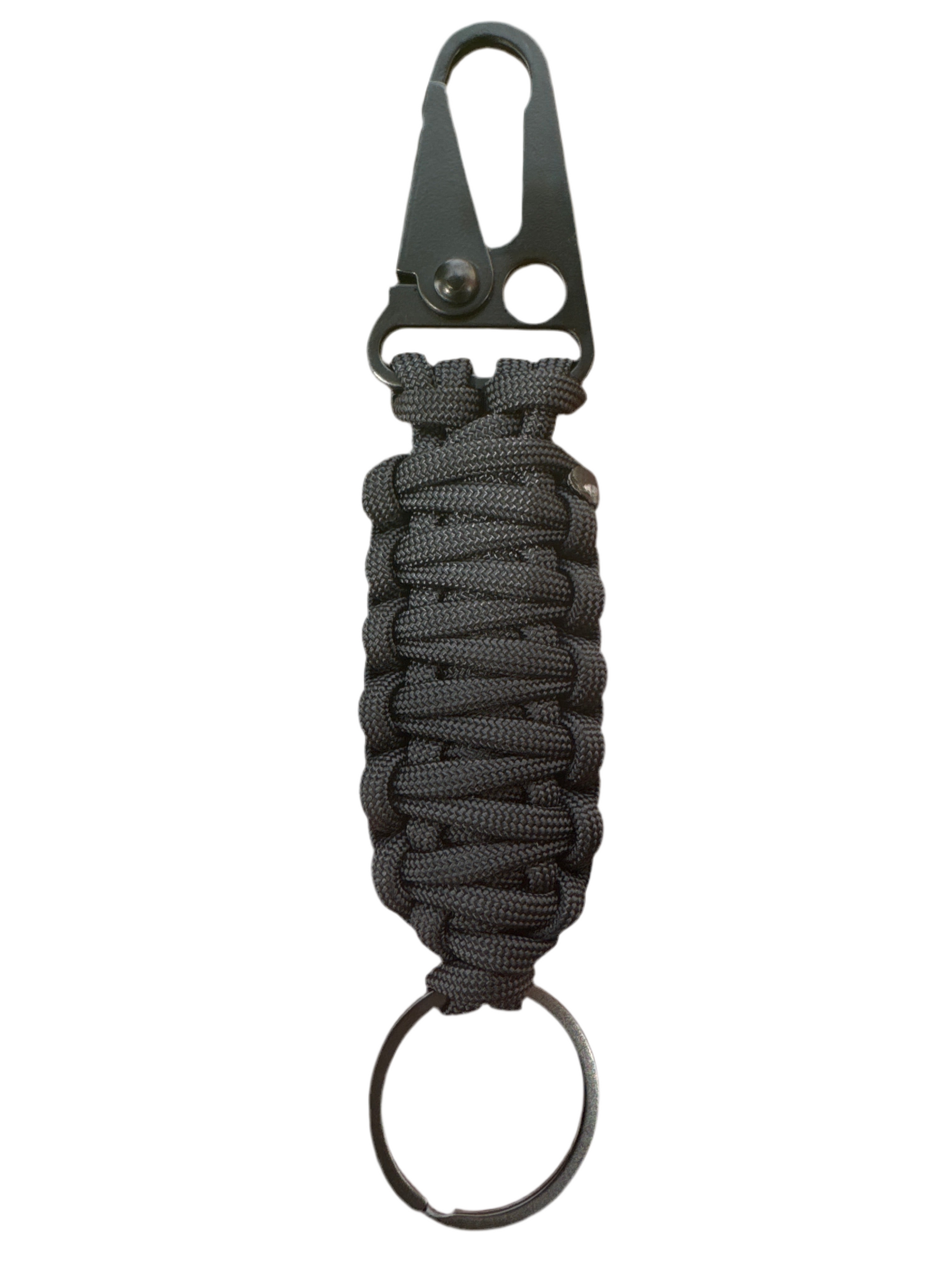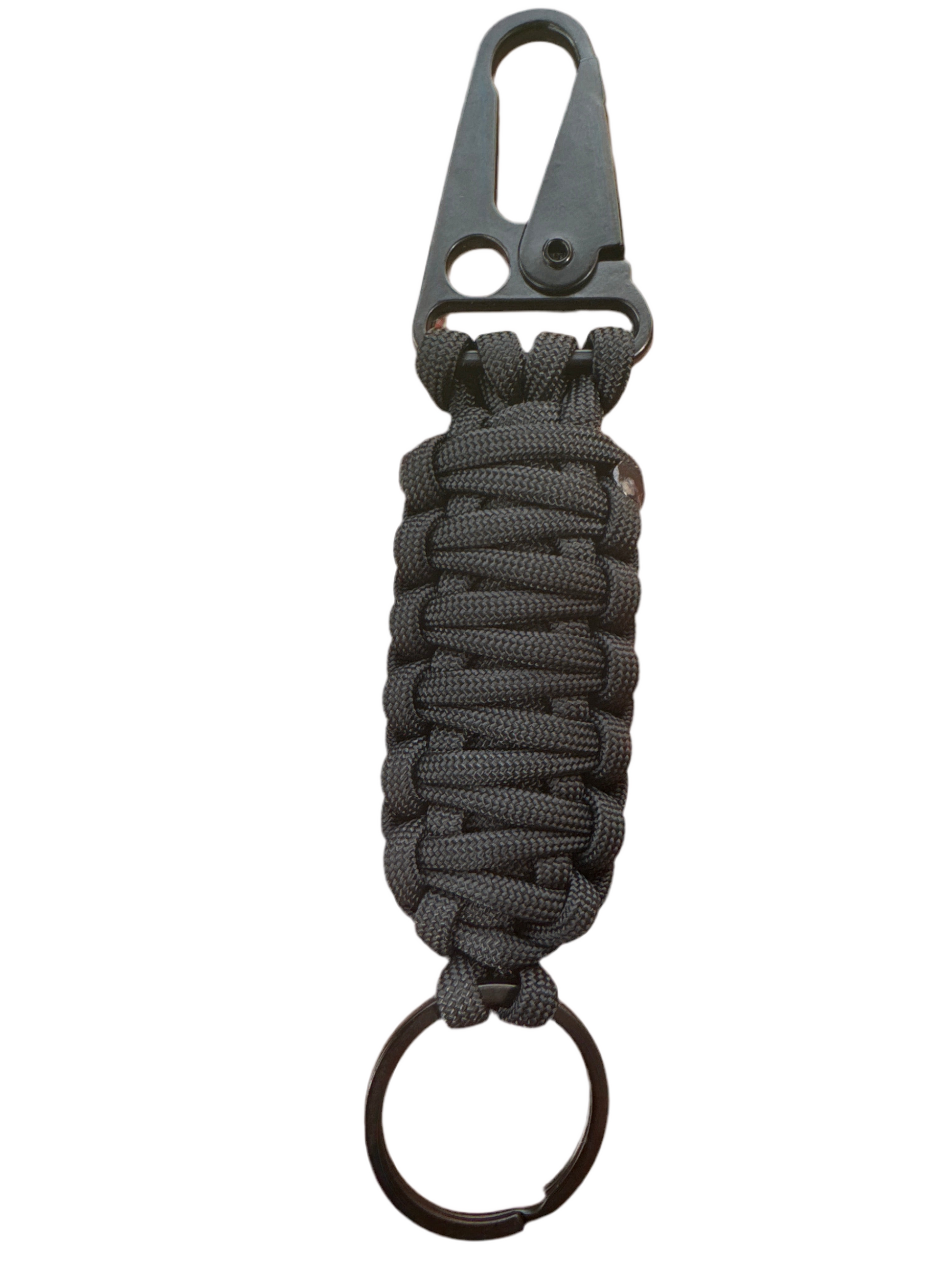 Fabricado en paracord de nylon y acero, este llavero es perfecto para actividades al aire libre, ya que su material es conocido por su alta resistencia y versatilidad. El mosquetón permite una fácil sujeción a cinturones, mochilas o llaves, asegurando que tus pertenencias estén siempre al alcance. Este llavero es una excelente opción para quienes valoran la funcionalidad sin sacrificar el estilo.