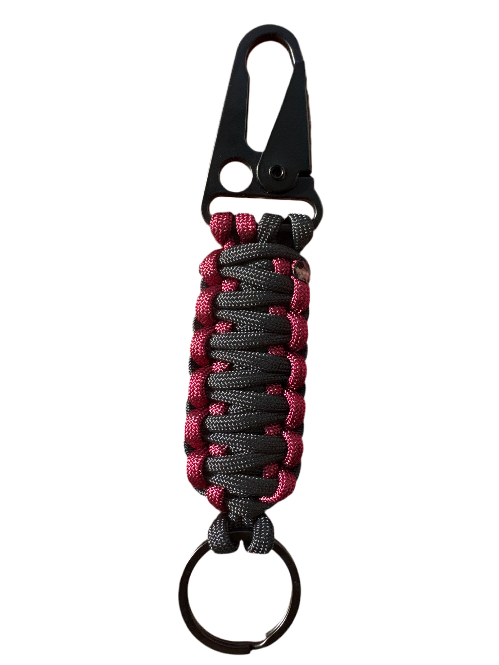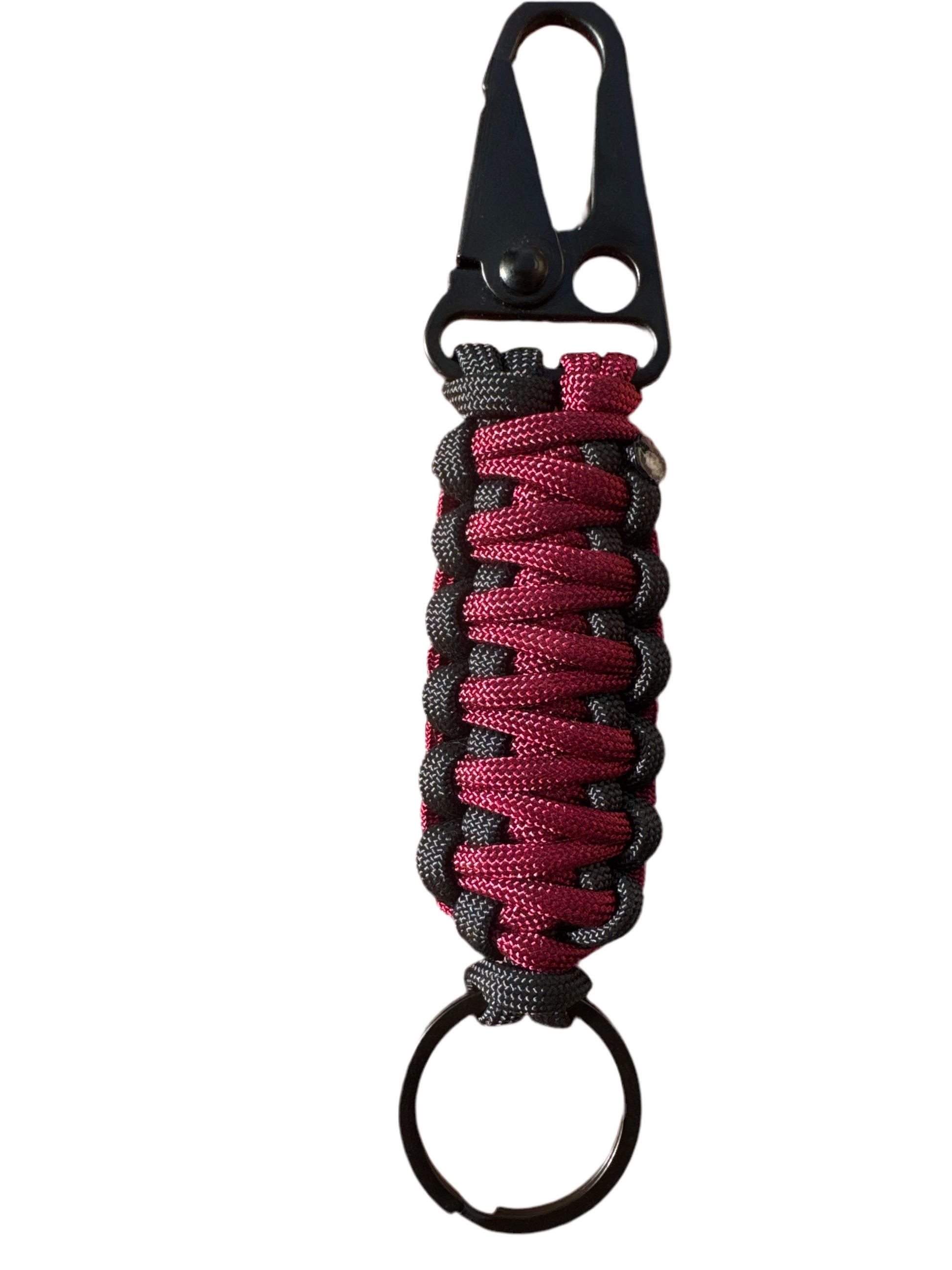 Fabricado en paracord de nylon y acero, este llavero es perfecto para actividades al aire libre, ya que su material es conocido por su alta resistencia y versatilidad. El mosquetón permite una fácil sujeción a cinturones, mochilas o llaves, asegurando que tus pertenencias estén siempre al alcance. Este llavero es una excelente opción para quienes valoran la funcionalidad sin sacrificar el estilo.
