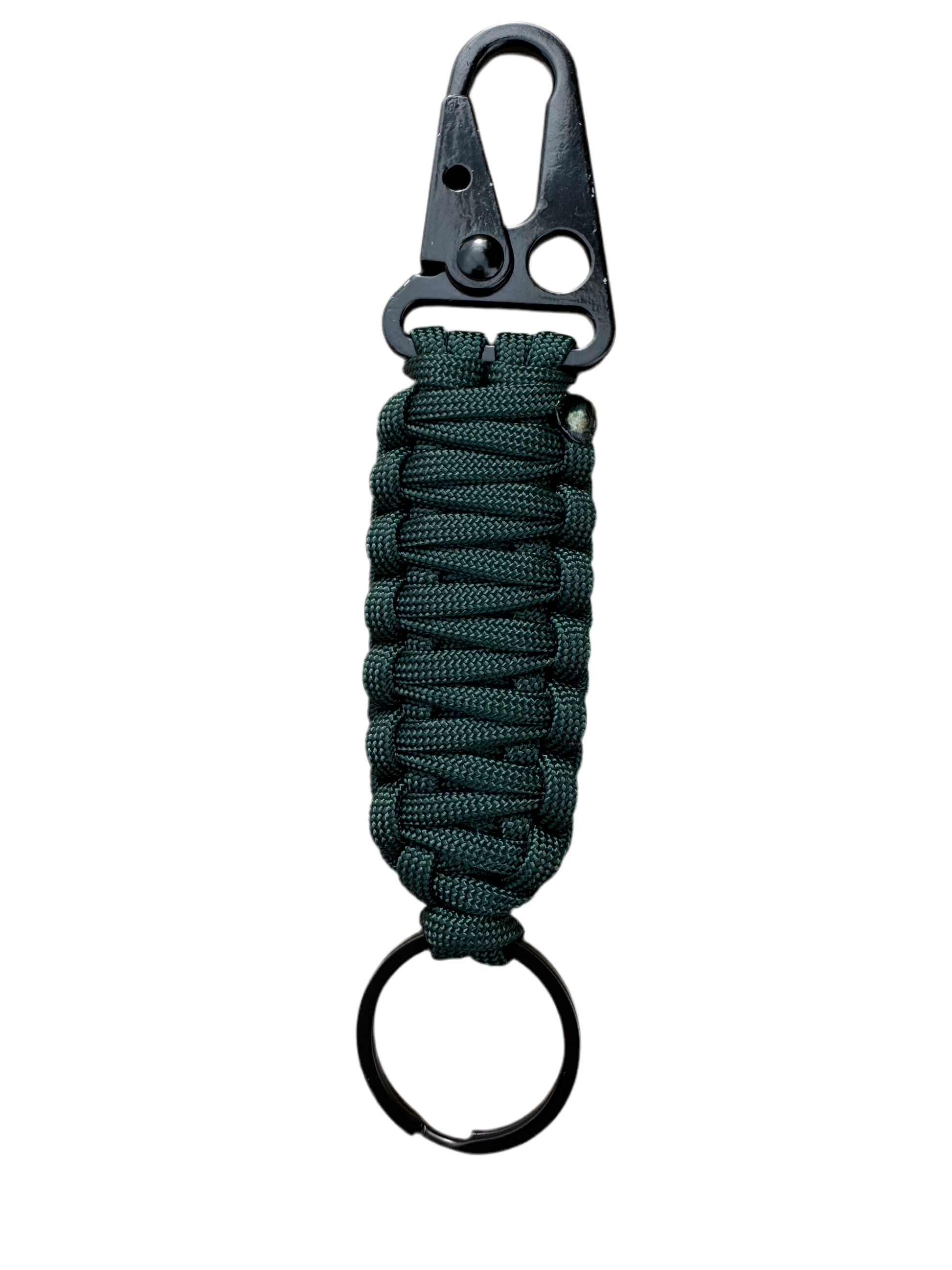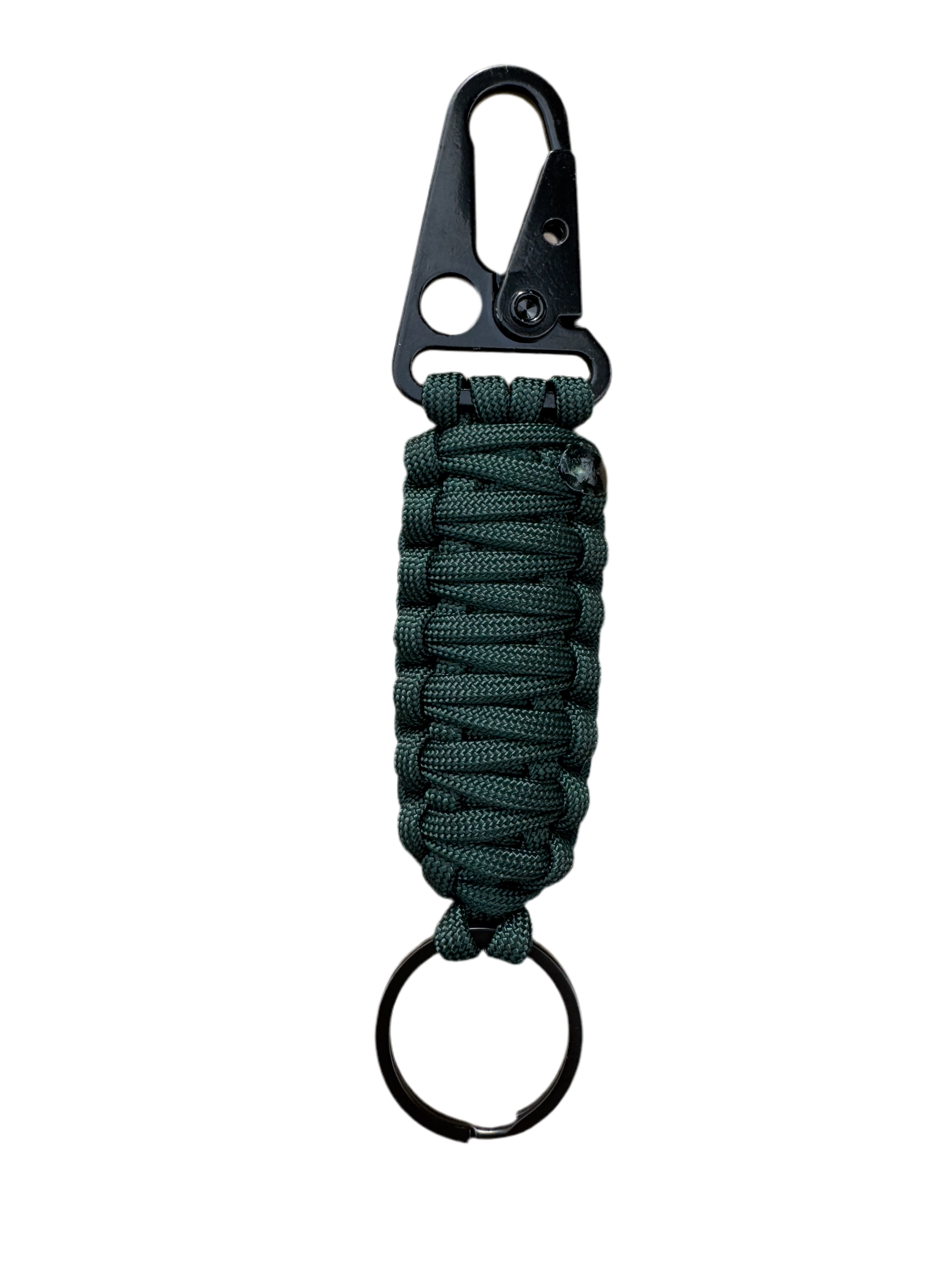 Fabricado en paracord de nylon y acero, este llavero es perfecto para actividades al aire libre, ya que su material es conocido por su alta resistencia y versatilidad. El mosquetón permite una fácil sujeción a cinturones, mochilas o llaves, asegurando que tus pertenencias estén siempre al alcance. Este llavero es una excelente opción para quienes valoran la funcionalidad sin sacrificar el estilo.